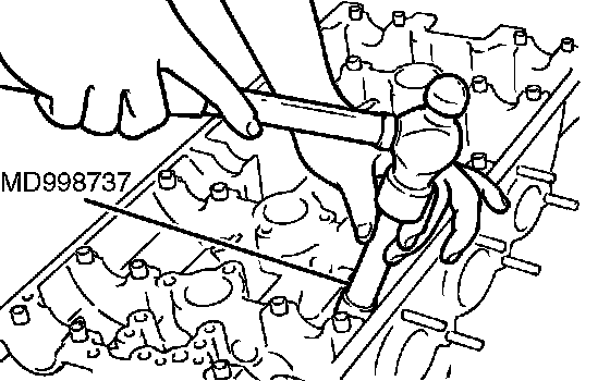 2. Using special tool MD998737, install a new stem seal to the valve guide.