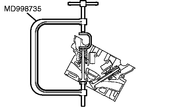 Using special tool MD998735 or MD998772, compress the valve spring and insert the retainer lock into position.