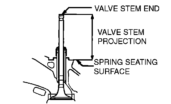 Assemble the valve, then measure the valve stem projection between the end of the valve stem and the spring seating surface. If the measurement exceeds the specified limit, replace the valve seat.