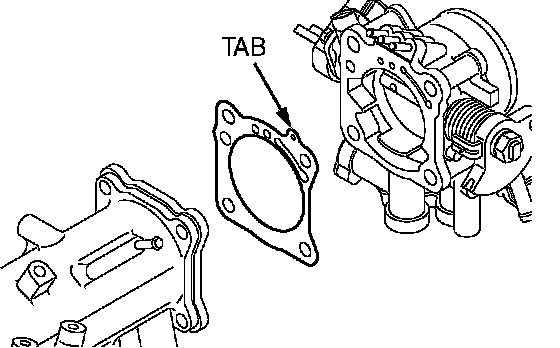 Install the throttle body gasket with its tab located as shown in the illustration.