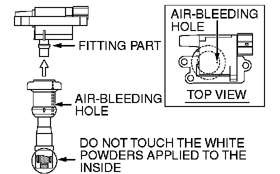 ^ White powders are applied to the fitting area of the spark plug on the ignition coil boot in order to prevent the fitting area from baking onto the spark plug. Do not touch or clean them.