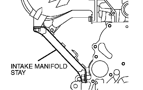 Tighten the bolts to the specified torque on both ends after making sure that the stay is in close contact with the bosses on the intake manifold and cylinder block.