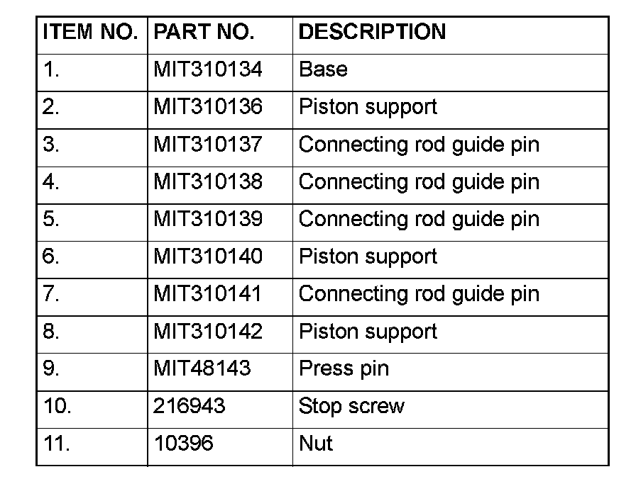 8. Remove the piston assembly from the base. Remove the guide pin and press pin from the assembly.