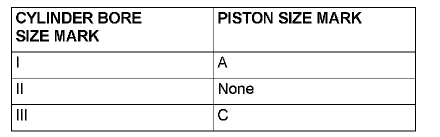 1. When replacing the piston, read off the cylinder bore size mark on the cylinder block as illustrated, and select a piston according to the flowing table.
