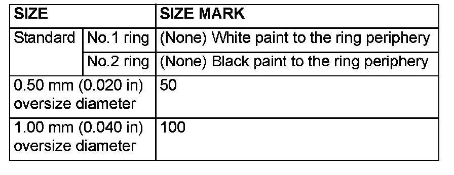 NOTE: Size marks on piston rings are as follows.