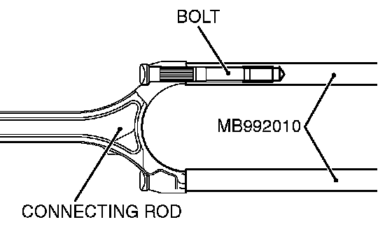 1. Not to damage the crank pin, attach a special tool MB992010, to the connecting rod bolt.