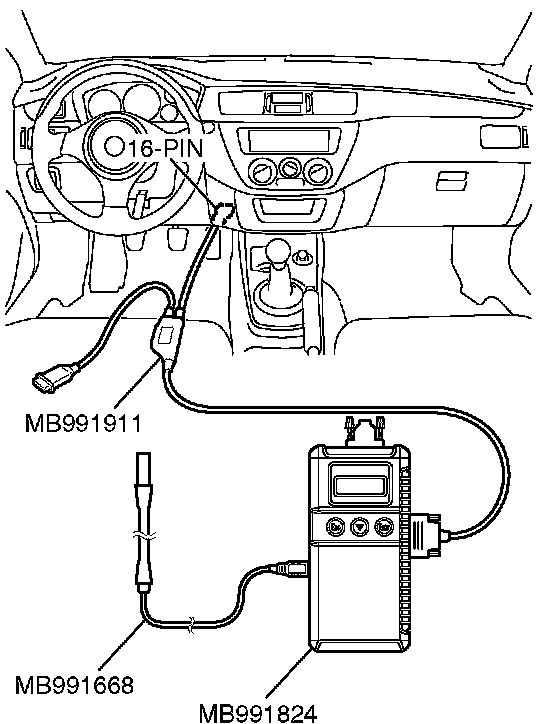 1. Connect special tool MB991668 to scan tool MB991824.