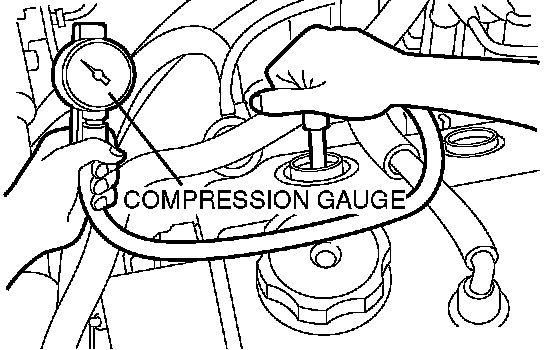 7. Crank the engine with the throttle valve fully open and measure the compression pressure.