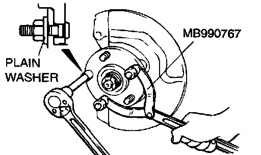 3. Use special tools MB990767 and MB991618 to remove the hub bolts.
