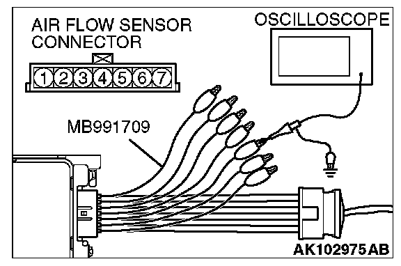 1. Disconnect the volume airflow sensor connector, and connect the test harness special tool (MB991709) in between. (All terminals should be connected.)