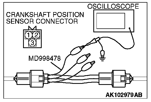 3. Disconnect the crankshaft position sensor connector, and connect the test harness special tool (MD998478) in between.