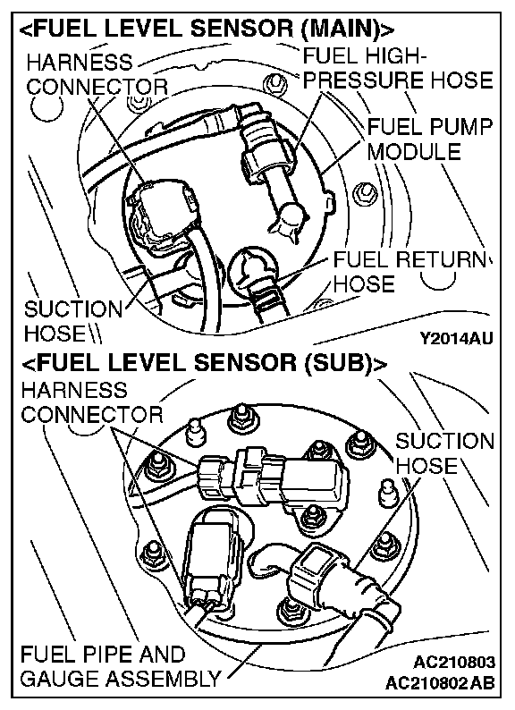 CAUTION: When withdrawing the fuel pump module or fuel pipe and gauge assembly from the fuel tank, be careful not damage the sensor unit and the float.