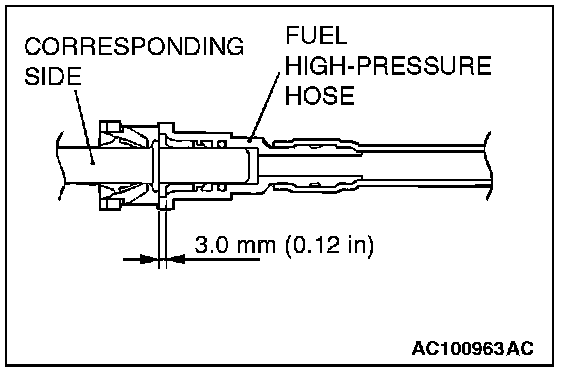 CAUTION: Snap the fuel high-pressure hose one-touch joint into place, then pull back slightly on the hose to assure it is secure. However, the connection should have a play of approximately 3.0 mm (0.12 inch).