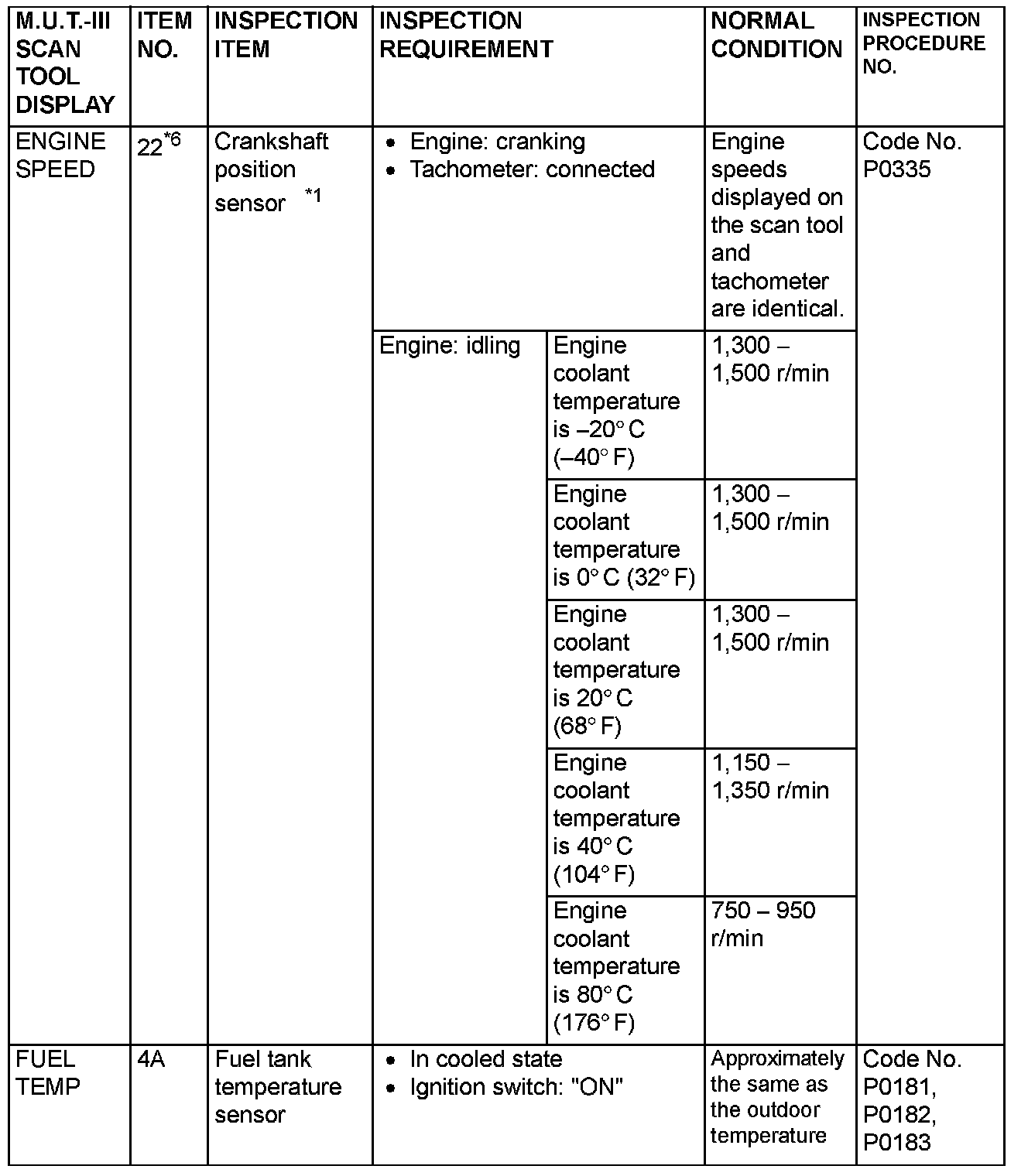 NOTE: *3: The injector drive time represents the time when the cranking speed is at 250 r/min or below when the power supply voltage is 11 volts.
