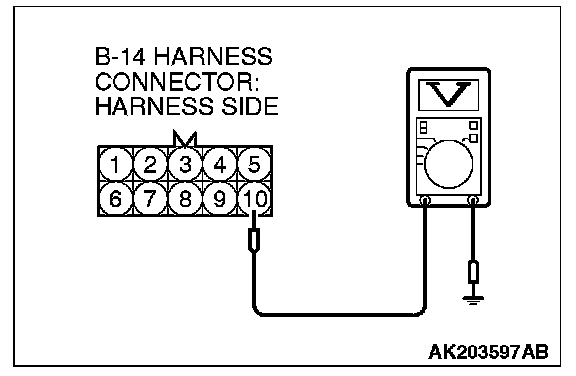 3. Measure the voltage between terminal No. 10 and ground by backprobing.