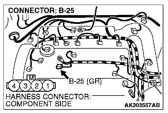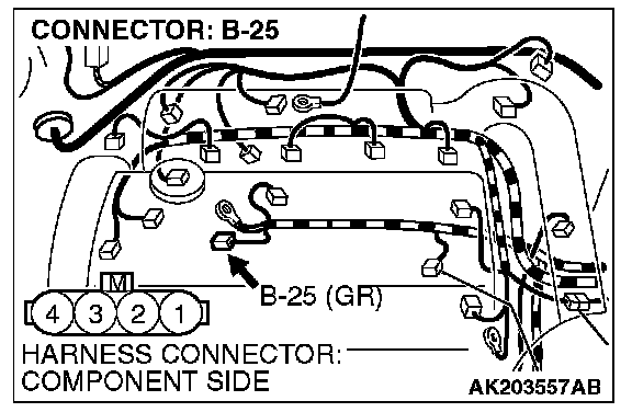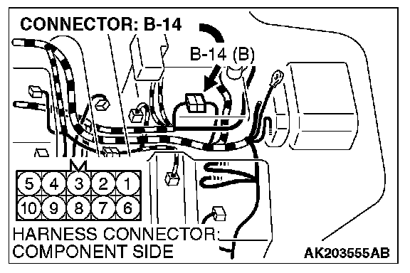 NOTE: Check harness after checking intermediate connector B-14. If intermediate connector is damaged, repair or replace it. The confirm that the malfunction symptom is eliminated.