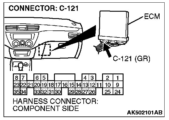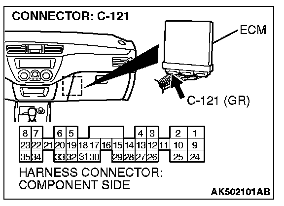 STEP 4. Check connector C-121 at ECM for damage. Q:Is the connector in good condition?