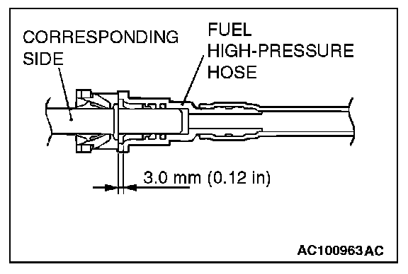CAUTION: Snap the fuel high-pressure hose one-touch joint into place, then pull back slightly on the hose to assure it is secure. However, the connection should have a play of approximately 3.0 mm (0.12 inch).