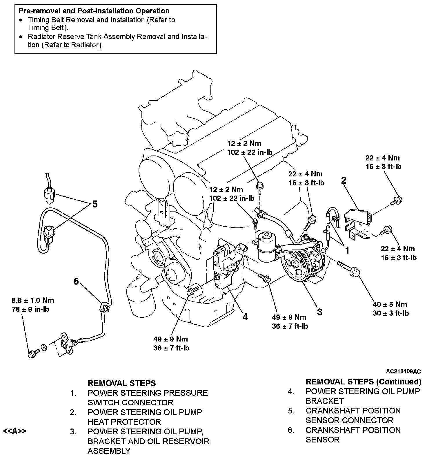 <> POWER STEERING OIL PUMP, BRACKET AND OIL RESERVOIR ASSEMBLY REMOVAL