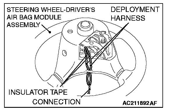 CAUTION: Once disconnected, both electrodes of the driver's air bag module connector short automatically to prevent accidental deployment caused by static etc. Still, in consideration of the accidental deployment, store the air bag module on flat place with deployment surface facing up. Also, do not put anything on it.