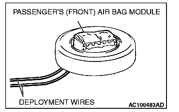 CAUTION: Once disconnected, both electrodes of the front passenger's air bag module connector short automatically to prevent accidental deployment caused by static etc. Still, in consideration of the accidental deployment, store the air bag module on flat place with deployment surface facing up. Also, do not put anything on it.