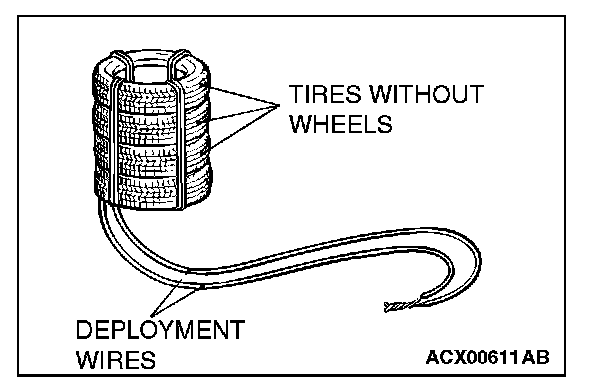 4. Connect the deployment wires to special tool MB686560, pass it beneath the tire and wheel assembly, and connect it to the air bag module.