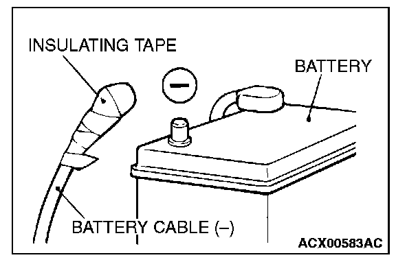 Disconnect the negative (-) battery cable from the battery and tape the terminal to prevent accidental connection and air bag(s) deployment.