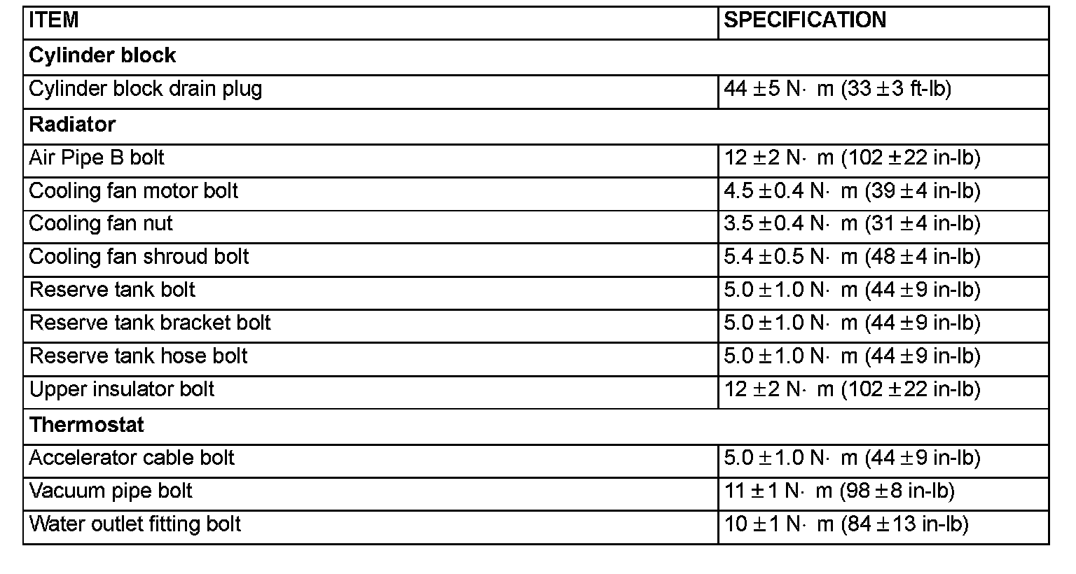 FASTENER TIGHTENING SPECIFICATIONS: