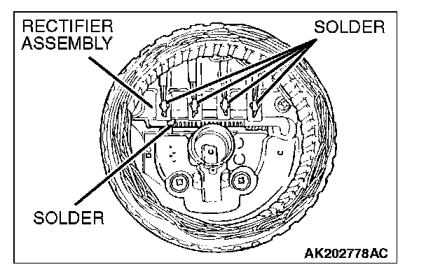 1. Unsolder the stator leads from the main diode of the rectifier assembly when the stator is removed.