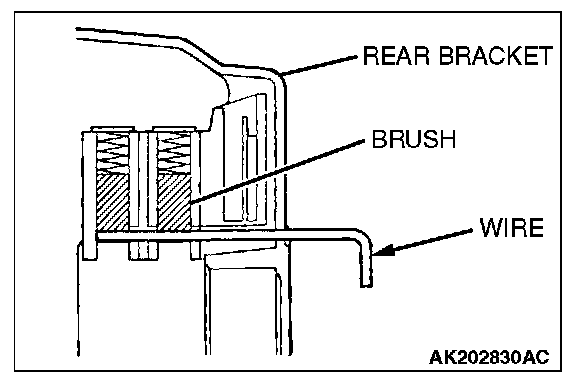 After installing the regulator assembly, insert a piece of wire through the hole in the rear bracket while pressing the brush to keep the brush against movement.