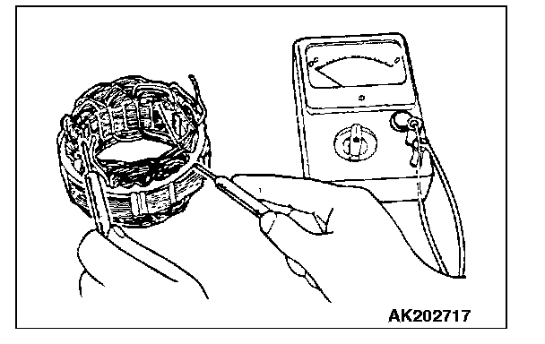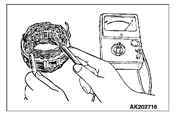 2. Check the continuity between coil and core. If there is no continuity, replace the stator.