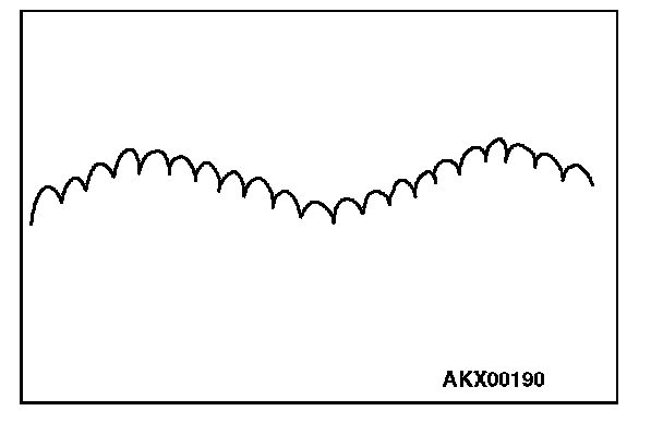 NOTE: Identification of abnormal waveforms is easier when there is a large output current (regulator is not operating). (Waveforms can be observed when the headlights are illuminated.)