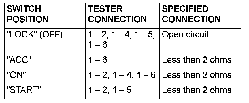 Ignition Switch Continuity Check