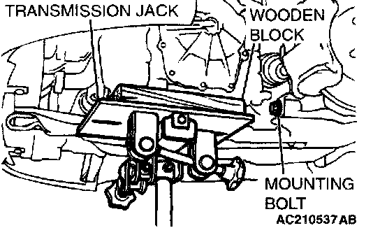 Retain the crossmember with a transmission jack, and then remove the crossmember mounting bolt.