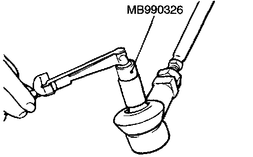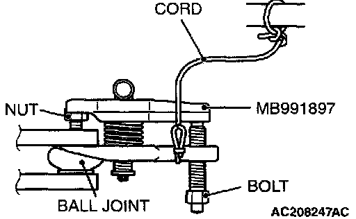 ^ Do not remove the nut from ball joint. Loosen it and use special tool MB991897 to avoid possible damage to the ball joint threads.