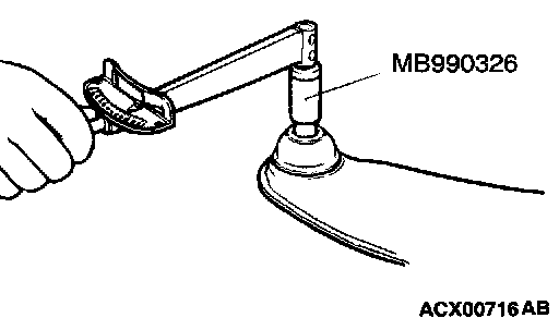 1. After shaking the upper arm ball joint stud several times, use special tool MB990326 to measure the turning torque of the upper arm ball joint.