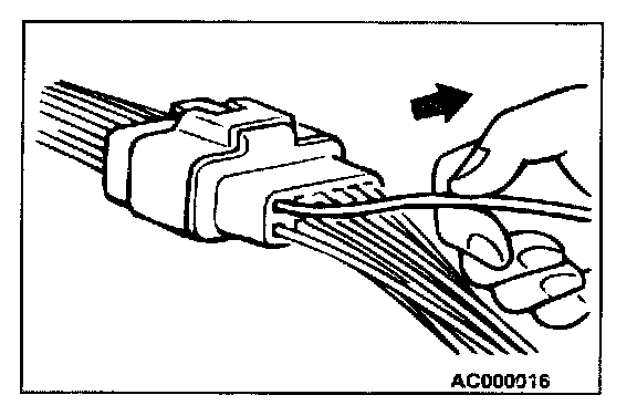 IMPROPER TERMINAL ENGAGEMENT CHECKTerminals inside a connector may not engage properly even if the connectors engage. Make sure that each terminal does not come out of the connector when gently pulling each harness wire. If it does, repair or replace the terminal and/or connector.