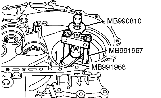 2. Using special tools MB990810, MB991967 and MB991968, remove the differential side bearing outer race.