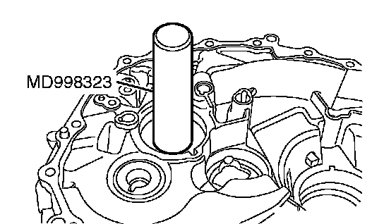 Using special tool MD998323, hammer the input shaft oil seal into the clutch housing.