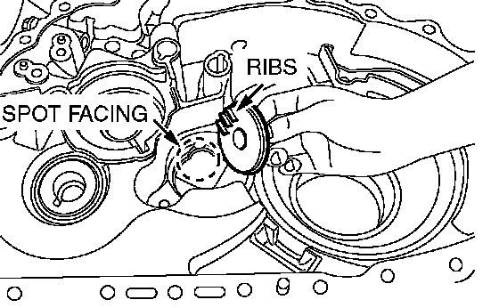 Install the oil channel so that the ribs located on the channel's main shaft side are fitted into the spot faced portion on the clutch housing.