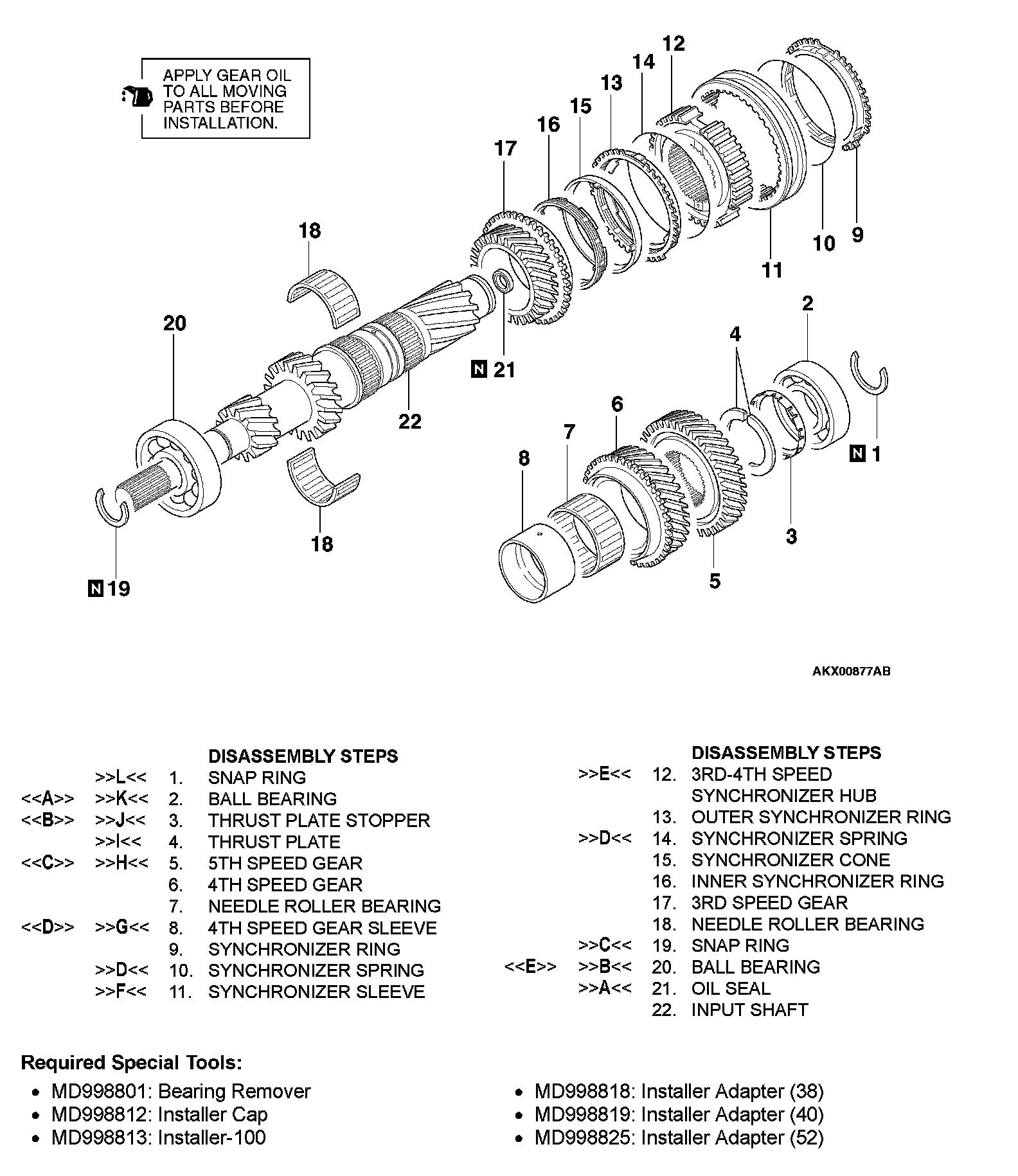 INPUT SHAFTDisassembly Steps 1-22: