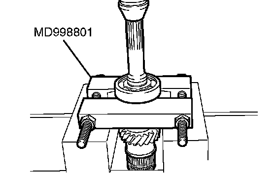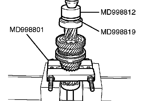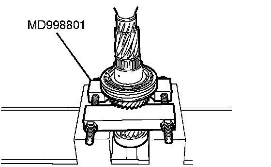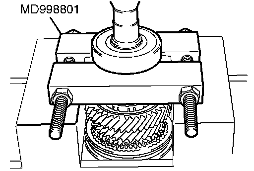 1. Using special tool MD998801, support the 5th speed gear, and then set them on the press.