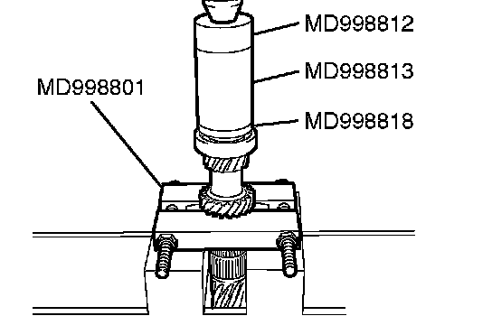 2. Using special tools MD998812, MD998813 and MD998818, press install the bearing with the press.