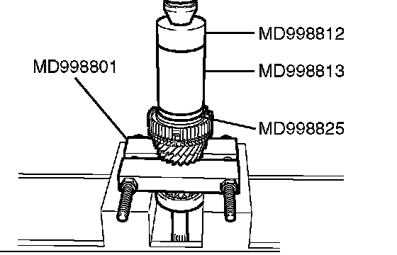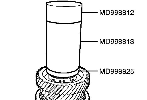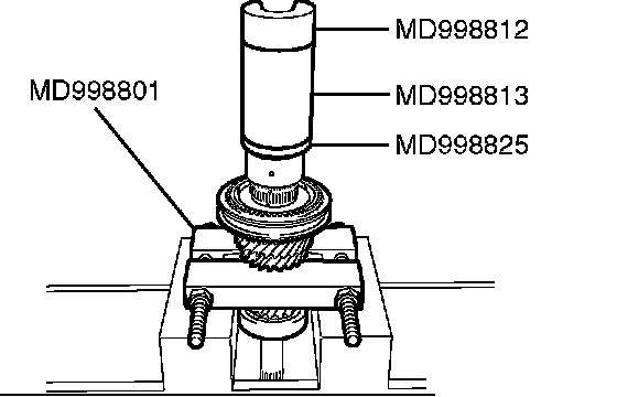 2. Using special tools MD998812, MD998813 and MD998825, press install the 5th speed gear in the input shaft.