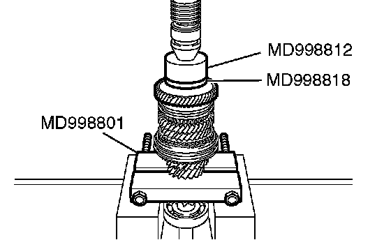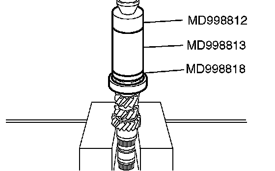 Using special tools MD998801, MD998812 and MD998818, press fit the input shaft rear bearing onto the input shaft.