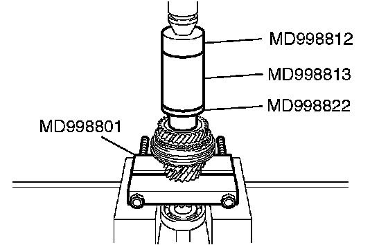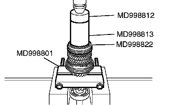 Using special tools MD998801, MD998812, MD998813 and MD998822, install the 5th gear sleeve.