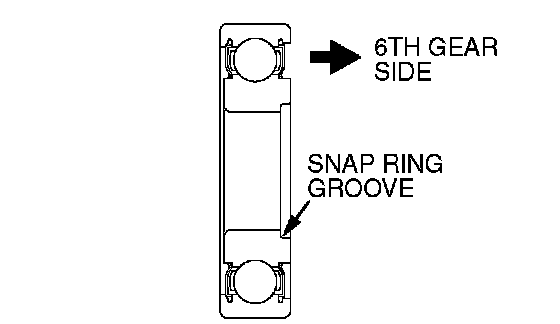 CAUTION: Install the input shaft rear bearing with its snap ring groove facing the side shown in the illustration.