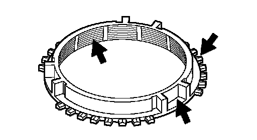 3. Check the synchronizer key contact surfaces of the synchronizer ring for damage, and excessive wear.