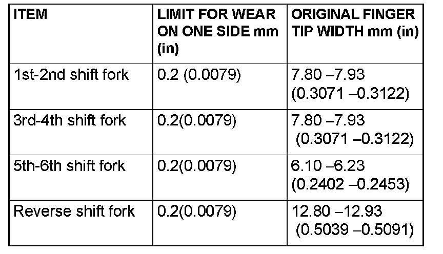 2. Check if the width of each shift fork finger tip (which rubs against the coupling sleeve) is greater than the limit.