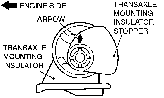 Install the transaxle mounting insulator stopper so that the arrow points as shown in the illustration.